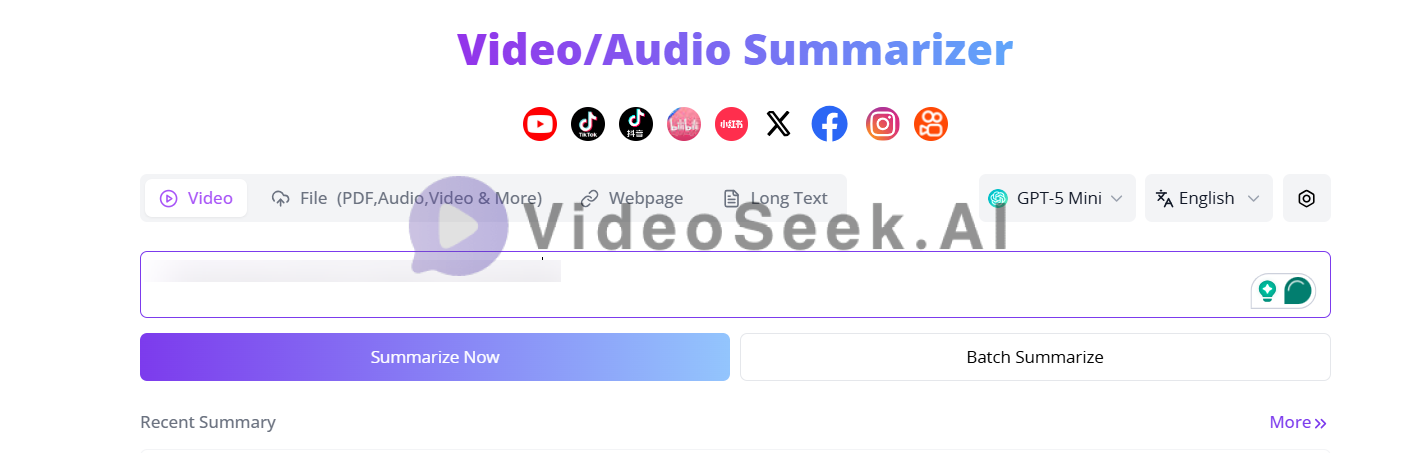 2. Pasted It into VideoSeek I opened VideoSeek, pasted the link, and clicked “Summarize Now.” Within seconds, VideoSeek generated a structured summary highlighting the main sections, action steps, and key insights.