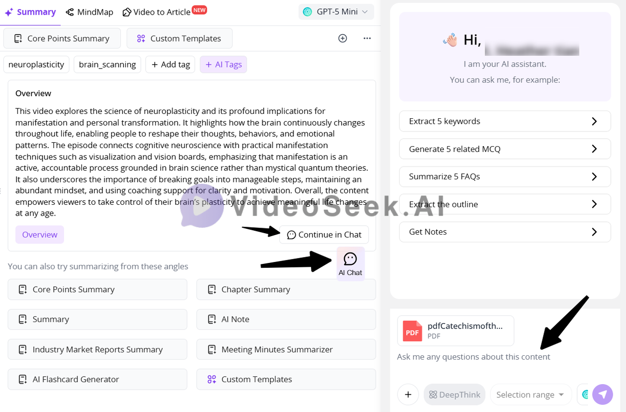 - Multi-Format Support: Besides videos, VideoSeek can also process PDFs, images, and audio files to extract core insights.