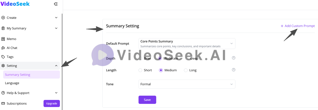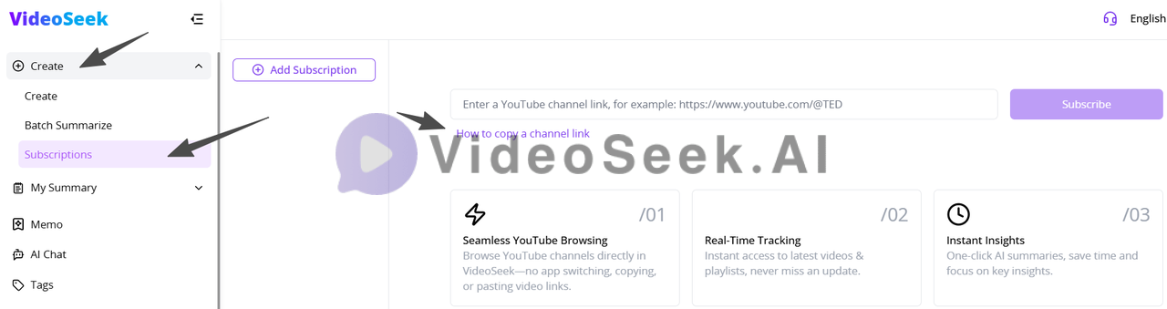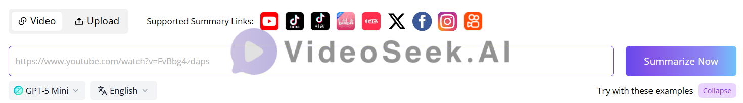Here we’ll use an all-in-one AI summarization tool, VideoSeek.
